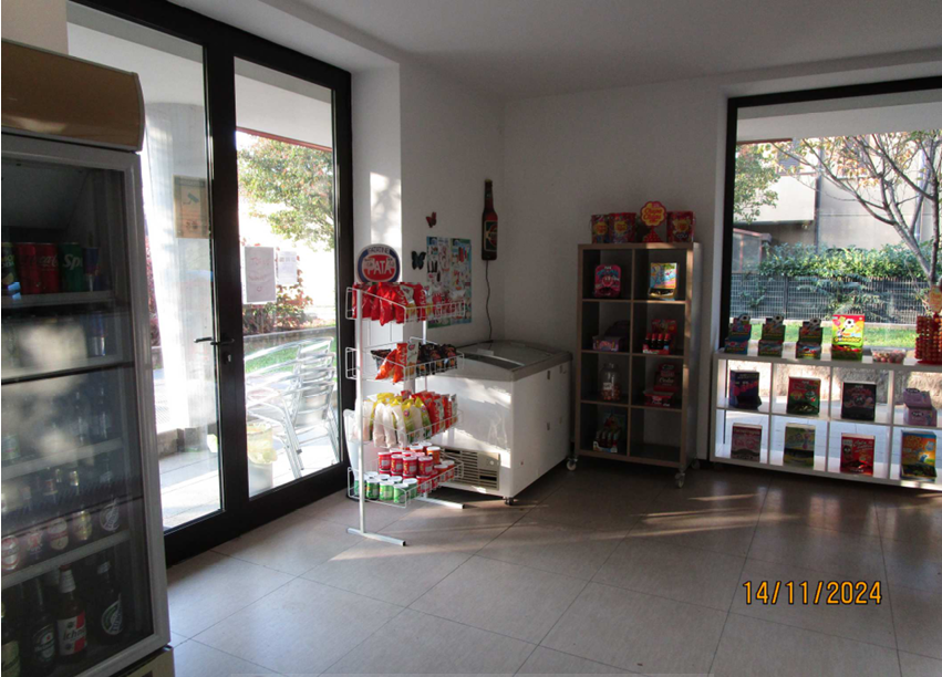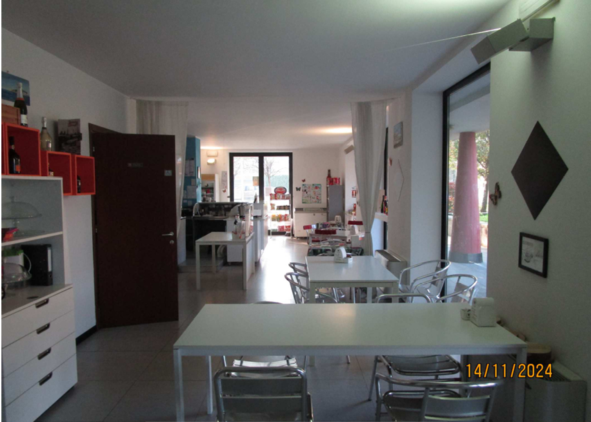A. Bar di mq. 115, piano terra, locale principale oltre retro, vano per preparazione vivande, disimpegni e doppi servizi. B. Posto auto scoperto mq. 12. C. Posto auto scoperto mq. 13. D. Box singolo mq. 15.