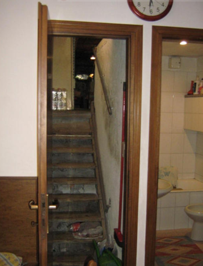 Appartamento della superficie commerciale 65,10 mq; l'appartamento è situato interamente al piano terra, con un'altezza interna di 2,70 m. È composto da ingresso, camera e cucina, bagno cieco (con altezza di 2,32 m), dotato di estrattore d'aria a parete, disimpegno, ripostiglio sottoscala e un altro ripostiglio (con altezza di 1,60 m) collegato alla cucina da una scala interna rivestita in pietra.