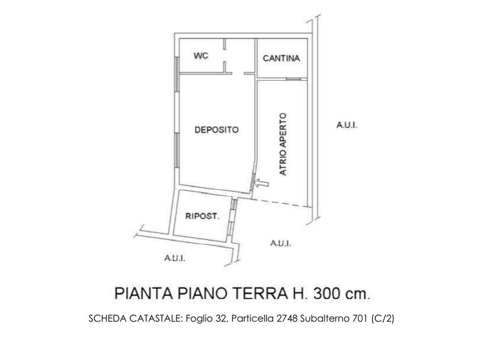 Quota indivisa in ragione di 1/2 del diritto di proprietà. In Comune di INTROBIO, Via Vittorio Emanuele II n. 2, unità immobiliare composta da ripostiglio, atrio aperto, cantina, deposito, disimpegno e servizio igienico al piano seminterrato.