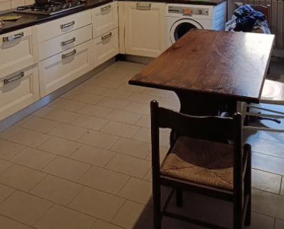 I pavimenti al piano terra sono in piastrelle, al piano primo sono in parquet e in piastrelle in bagno, al piano