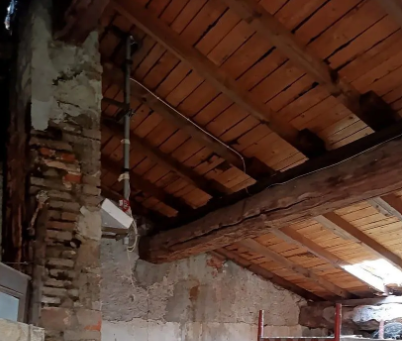 I soffitti sono parzialmente con struttura e travi in legno a vista su tutti i piani.