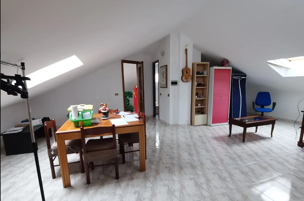 artamento di mq. 125,40, occupato con contratto di locazione opponibile scadente il 14/03/2029, posto al piano 1-2, accessibile da scala esterna in muratura di proprietà esclusiva ma posta su area cortilizia di proprietà esclusiva del proprietario del piano terra e composto da tre camere, cucina e doppi servizi con annesso vano sottotetto al piano secondo, oltre a box singolo al piano interrato.