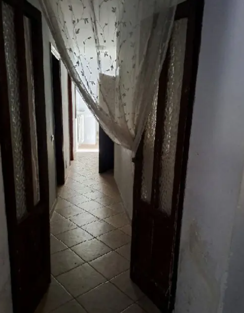 Appartamento di circa 95 mq lordi, ubicato al piano terra in edificio condominiale di 3 piani, composto da cucina, soggiorno, due camere, disimpegno, servizio igienico, oltre a box di pertinenza.
