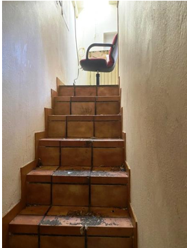 si accede ad un bagno di 4,8 mq, dotato di finestra verso il cortile, e alla scala interna che conduce ad una