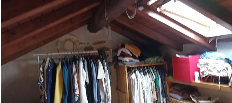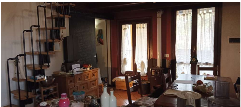 appartamento di mq. 65,82, ingresso al piano terra, scala interna di accesso al primo piano ove è ubicato il soggiorno con accesso al balcone e con angolo cottura, il servizio igienico e la camera da letto. Quota di 2/10 di piena proprietà di sottotetto non abitabile di mq. 310.