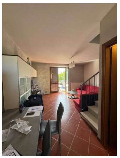 Piena Proprietà. In Comune di MONTICELLO BRIANZA, Frazione Cortenuova, nel fabbricato in Via San Michele n. 35, appartamento disposto su due livelli collegati tra loro tramite scala interna e composto da soggiorno, cucina, disimpegno e servizio igienico al piano primo; disimpegno, due camere, bagno e due balconi al piano secondo; con annessa area scoperta pertinenziale adibita a giardino al piano terra.